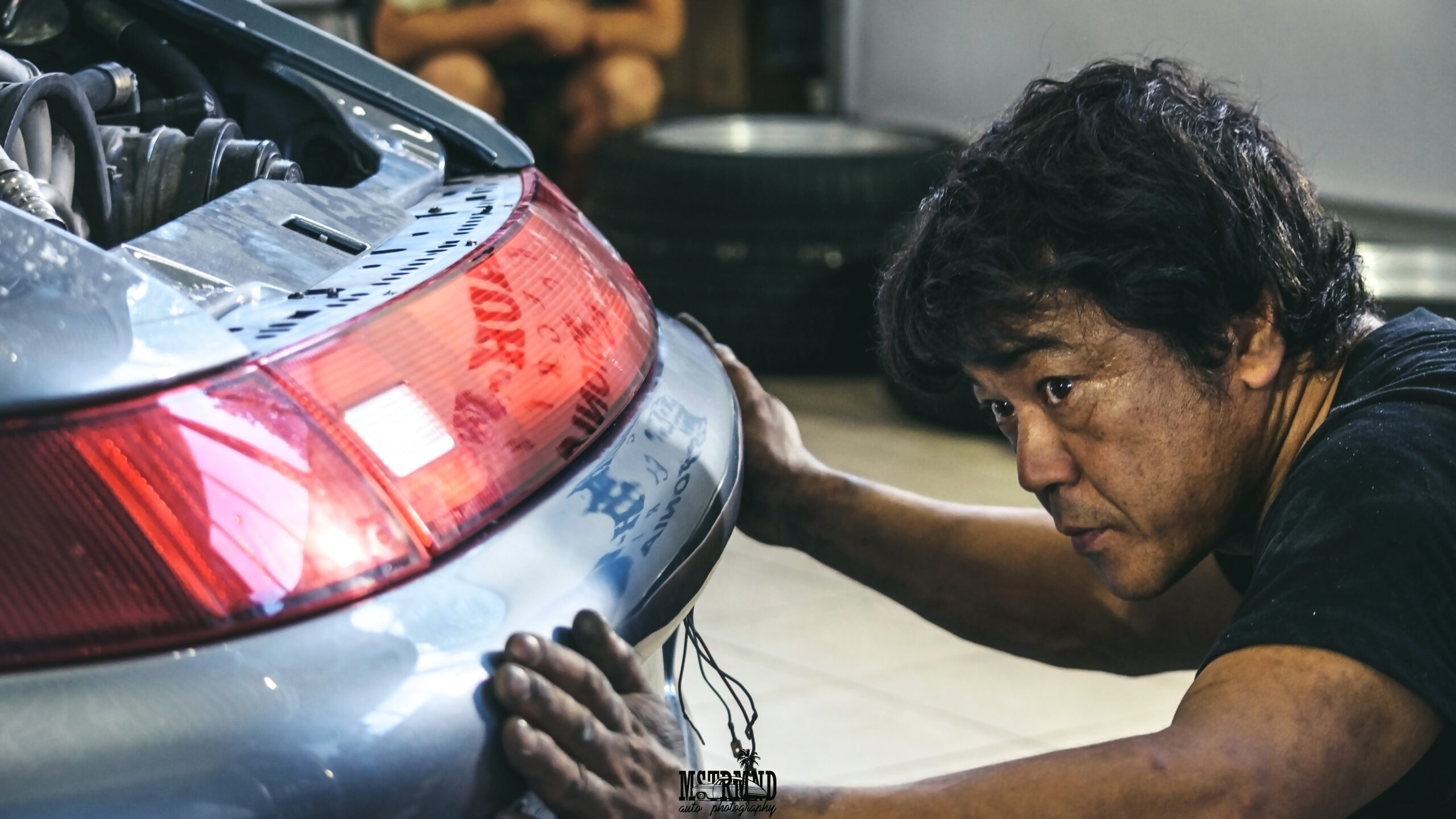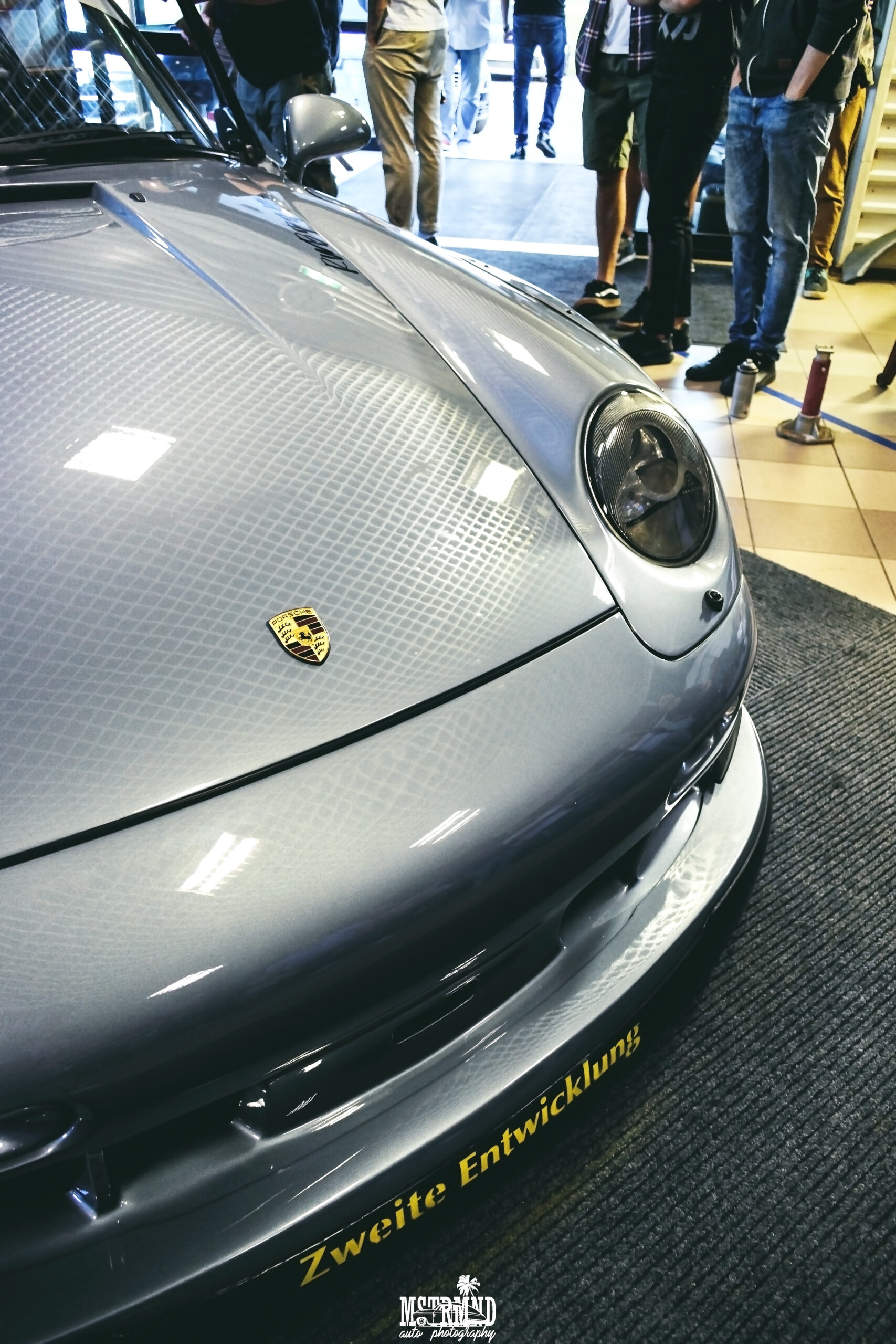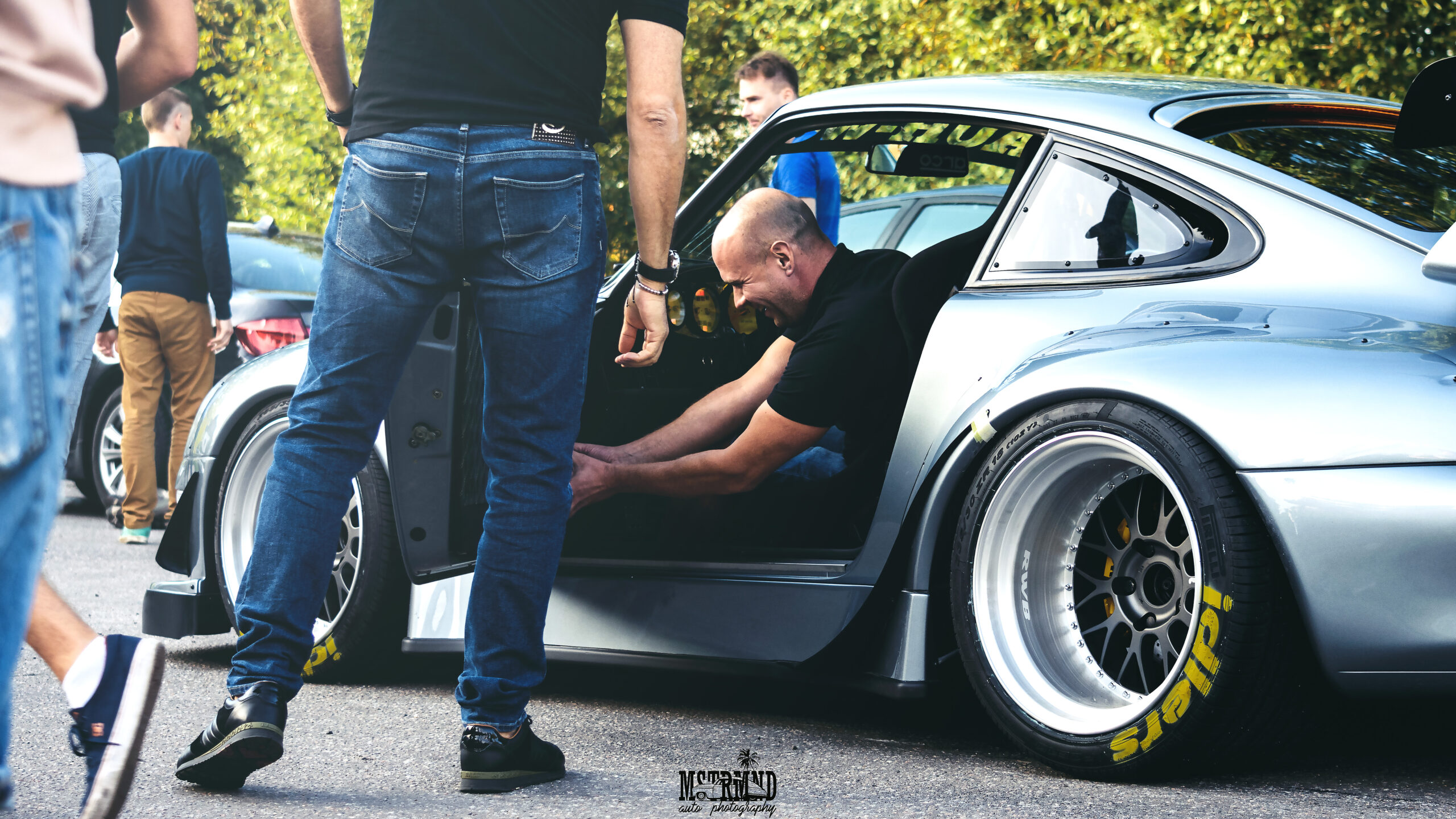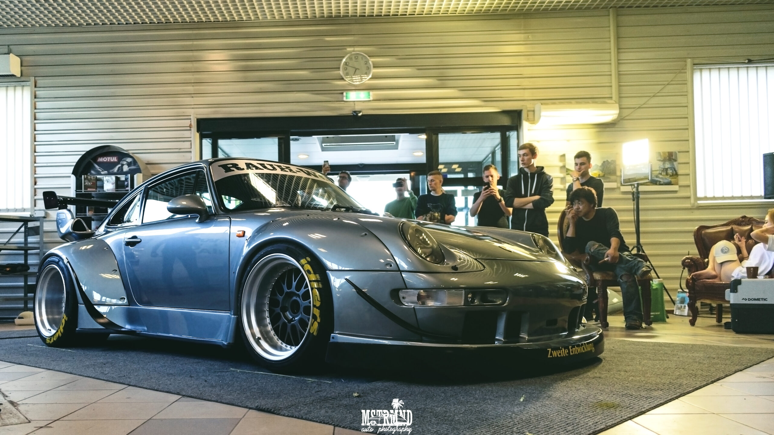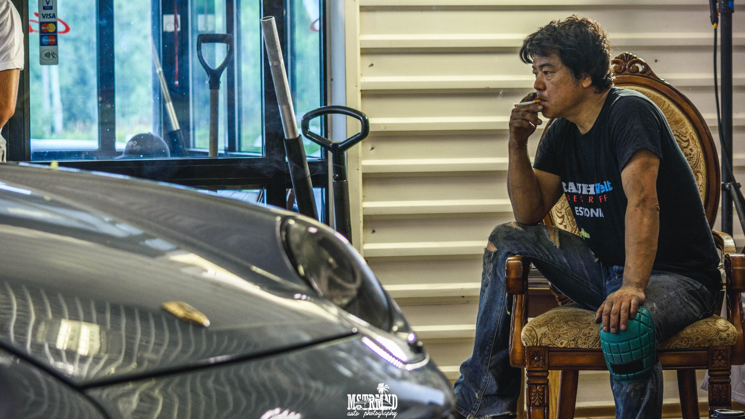 A small cluster of Porsches in the parking lot was the first confirmation. Inside, the atmosphere felt almost accidental – not like an organized event, but like stepping into something that was already in motion.  And there he was. Akira Nakai, quietly working on the 993.