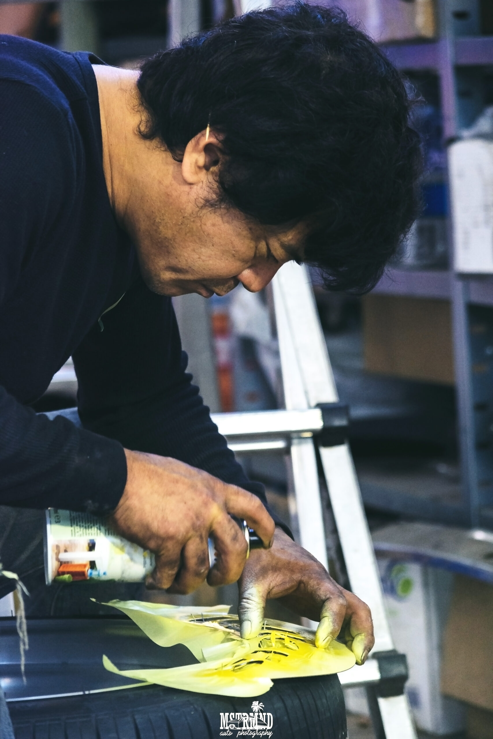 No stage, no distance, no formalities. Just a man, a car, and a process that felt raw and immediate. Measurements were taken directly from the body. Panels were cut without hesitation. There were no visible templates, no digital tools – only instinct, repetition, and years of experience guiding each decision.
